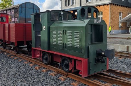 Die Diesellok V5 ist eine Lok der Gattung DS 40, welche als Standarttyp von derDiepholzer Maschinen-Fabrik (DIEMA) 1954 unter der Fabriknummer 1659 an dieBasalt AG... Weiterlesen