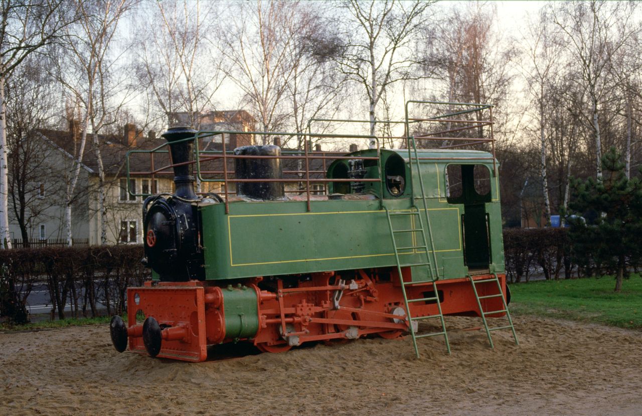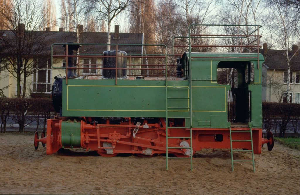 …wurde Lok 7729 nach ihrer Abstellung zum Spielobjekt. Die Stadt Bonn erwarb die kleine Lok und stellte sie auf dem Spielplatz an den Rigal`schen Wiesen in Bad Godesberg auf. Für viele Kinder dieser Zeit ist es ein Stück Kindheit und auch einige unserer Vereinsmitglieder können sich noch an viele schöne Stunden auf dem „Spielobjekt 7729“ erinnern.