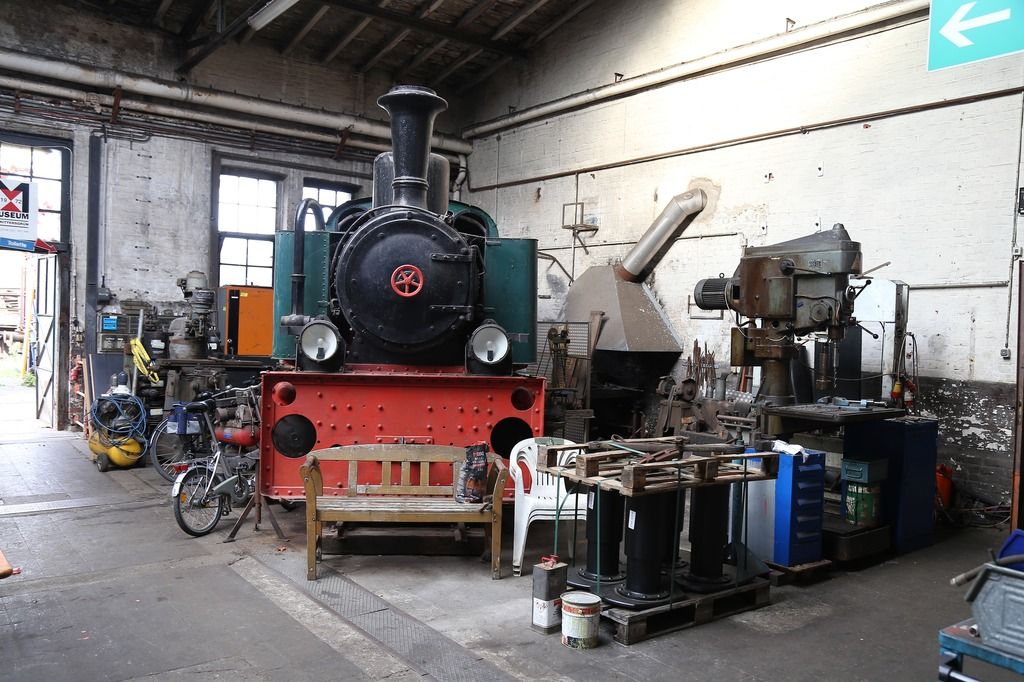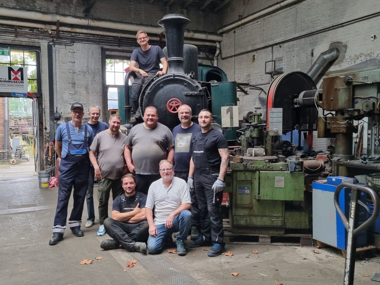 Bereits seit der Gründung des Asbacher Museums im Jahr 2000 gab es Bemühungen, die 7729 für die eigene Sammlung zu erwerben. Nach der Schließung des RIM und der ungewissen Zukunft am Standort in Köln Nippes stießen unsere erneuten Bemühungen um die Maschine 2024 unerwartet auf fruchtbaren Boden. Nach einigen Verhandlungen konnten wir die Lok Mitte 2024 erwerben und in Köln mit den Transportvorbereitungen beginnen. Da die Lok auf ihren eigenen Rädern durch einen engen Wanddurchbruch in die Haupthalle gebracht werden musste, wurde das Gestänge komplett demontiert, der Schlot abgebaut und die die Lok rollfähig gemacht.