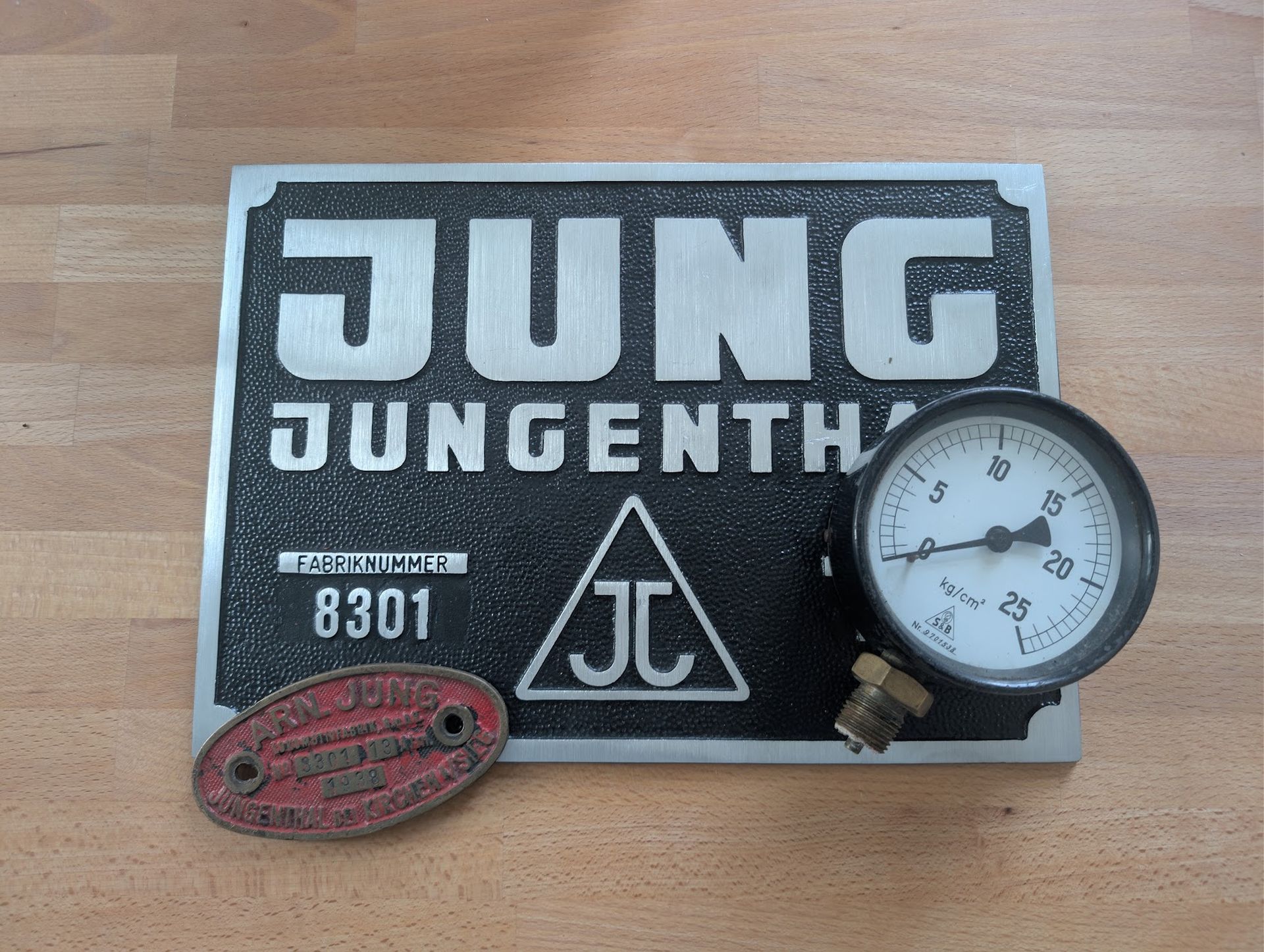 Völlig unerwartet konnten wir ein weiteres Relikt eines unserer Fahrzeuge für unsere Sammlung erhalten. Von vielen Freunden und Unterstützern erhielten wir Ende Januar den Hinweis auf eine Aktion in einem großen Internetauktionshaus, in welcher das originale und seit vielen Jahrzehnten verschollene Kesselschild unserer Dampflok 8301 angeboten wurde. Anfang Februar konnten eines unserer Mitglieder das Schild erwerben und spendete es unserem Museum. Ab April ist es gemeinsam mit dem neu gegossenen Fabrikschild und dem historischen Manometer in unserer Ausstellung zu sehen.