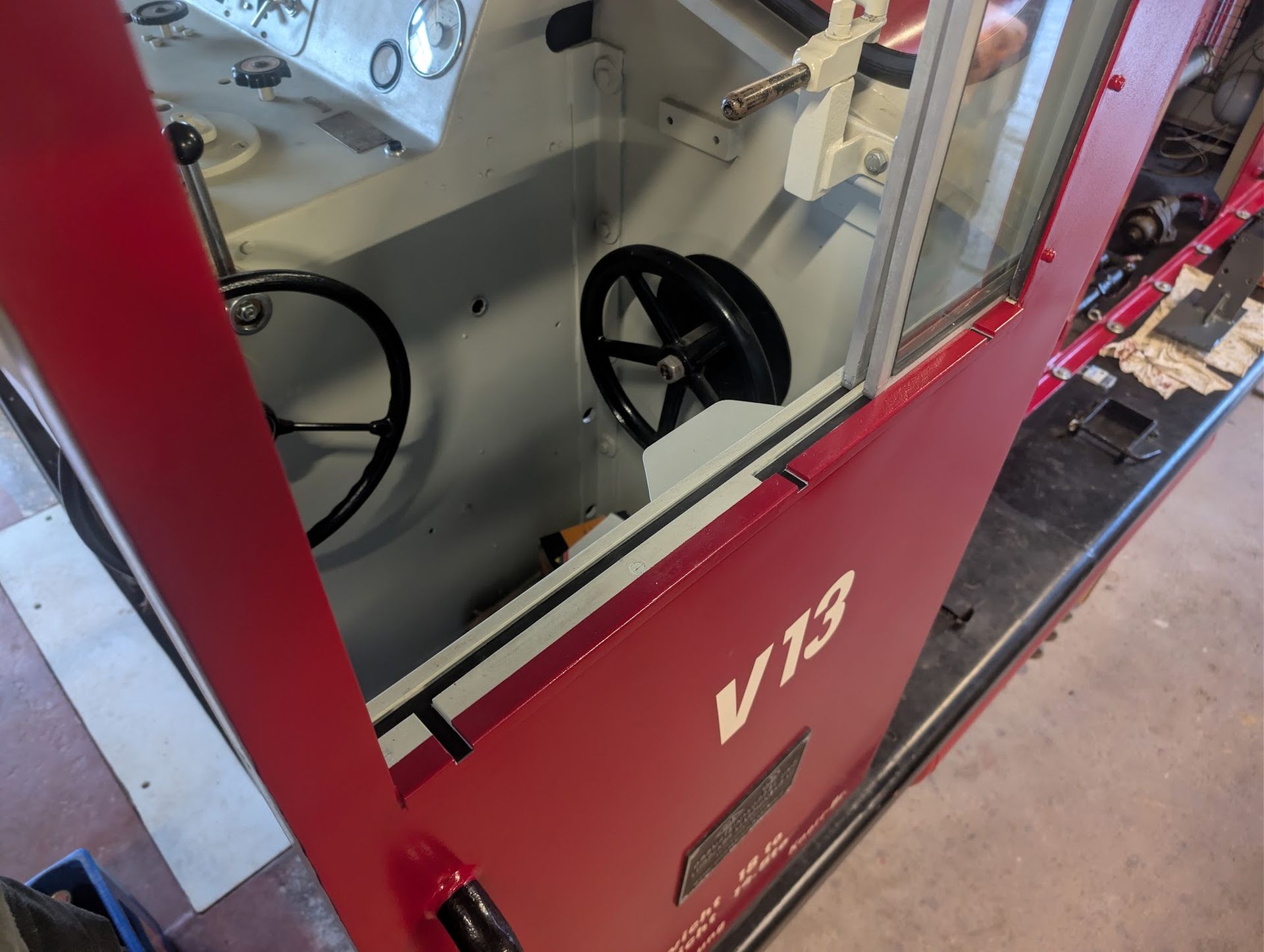 Ebenfalls erhielt die Maschine nach über drei Jahren ihre Führerstandsfenster zurück. Die neu angefertigten Verbundglasscheiben an Vorder- und Rückseite wurden klassisch mithilfe einer Gummifassung eingesetzt. Für die Schiebefenster an den Führerstandsseiten wurden neue Holzführungen angefertigt, die nach dem Lackieren noch mit Gleitleisten aus Kunststoff versehen wurden. Die markanten Fenster vervollständigen weiter das typische Erscheinungsbild der ikonischen RSE Diesellok.