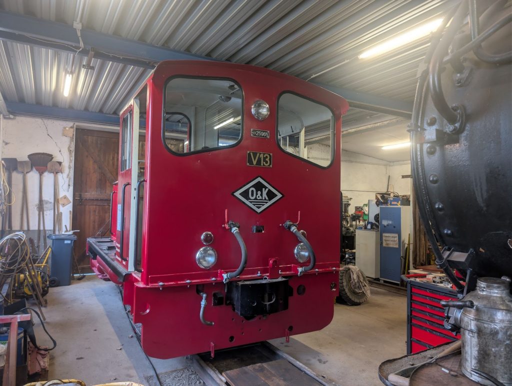 Mit unserem Jubiläum wurde es eher ruhig um die Aufarbeitung unserer originalen RSE-Strecken-Diesellok V13. Die geplante Inbetriebnahme mussten wir kurzfristig aufgrund mehrerer Verzögerungen verschieben, denn uns war es besonders wichtig, die historisch wertvolle Maschine nach bestem Wissen und Gewissen aufzuarbeiten. Dieses Ziel stand in starkem Kontrast zum immer größeren Zeitdruck, sodass wir die Inbetriebnahme verschieben mussten. Nun wird in aller Ruhe an der Fertigstellung der V13 gearbeitet und eine Inbetriebnahme im Laufe des Jahres 2026 ins Auge gefasst.