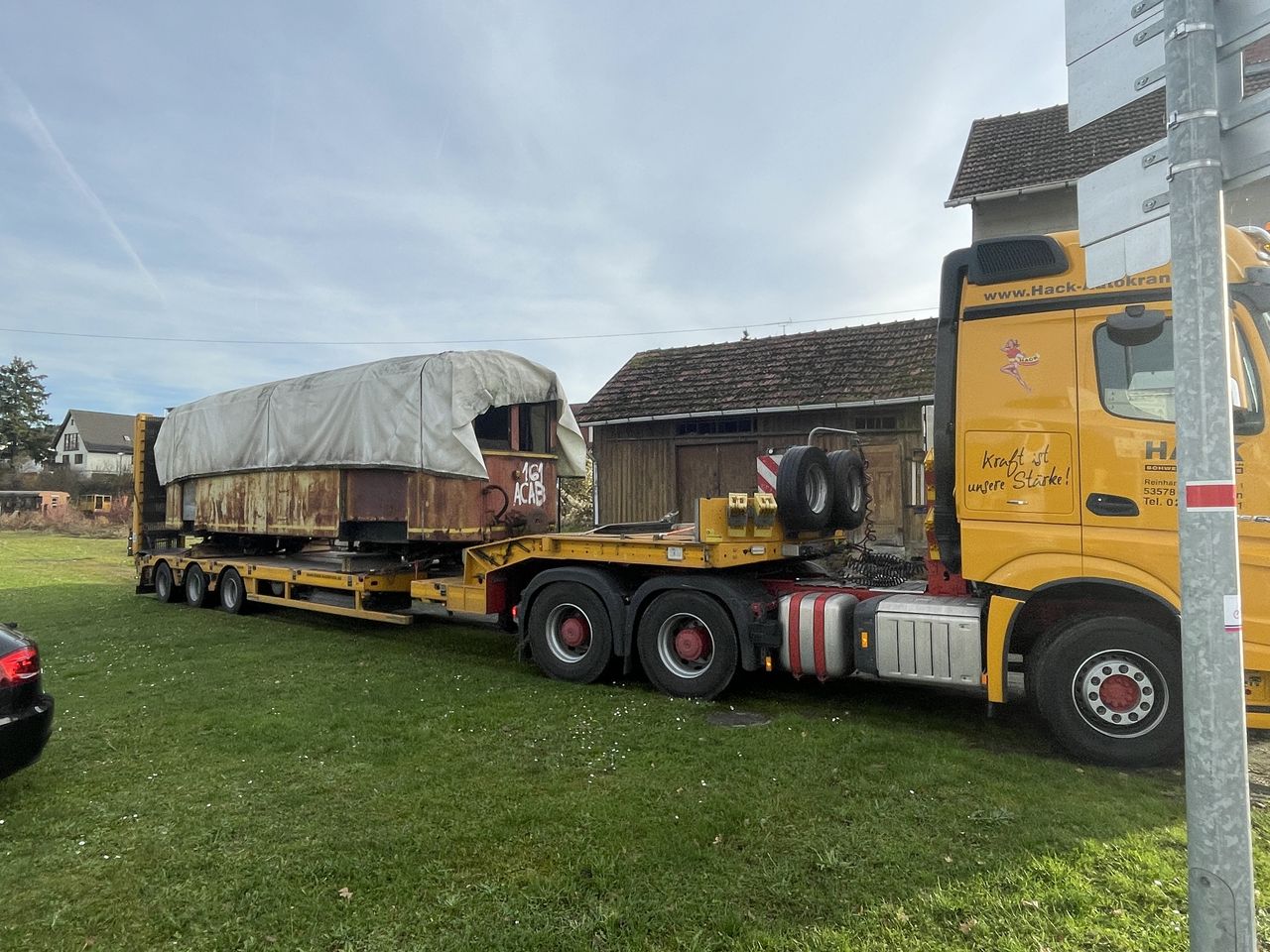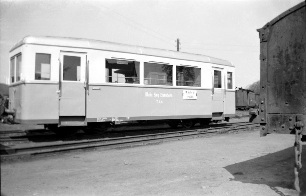 Völlig unerwartet kehrte Anfang November ein weiteres Fahrzeug der Rhein-Sieg Eisenbahn in seine alte Heimat zurückgeholt. Der TA 4 konnte nach 66 Jahren in Baden Württemberg an seine alte Wirkungsstätte zurück geholt werden. Ende des 19. Jahrhunderts wurde er beim „Düsseldorfer Eisenbahnbedarf AG, vormals Carl Weyer & Cie“ gebaut und als Wagen 27 in Dienst gestellt. Nachdem er bereits in den 30er Jahren die Lackierung der neuen Triebwagen erhalten hatte, baute ihn die Hennefer Werkstatt im Jahr 1942 als ersten zum „Triebwagen Anhänger“ um. Mit seinem modernen Aussehen prägte er, gemeinsam mit den nach seinem Vorbild entstandenen Schwesterfahrzeugen und den Triebwagen, das Gesicht der RSE nach dem zweiten Weltkrieg.